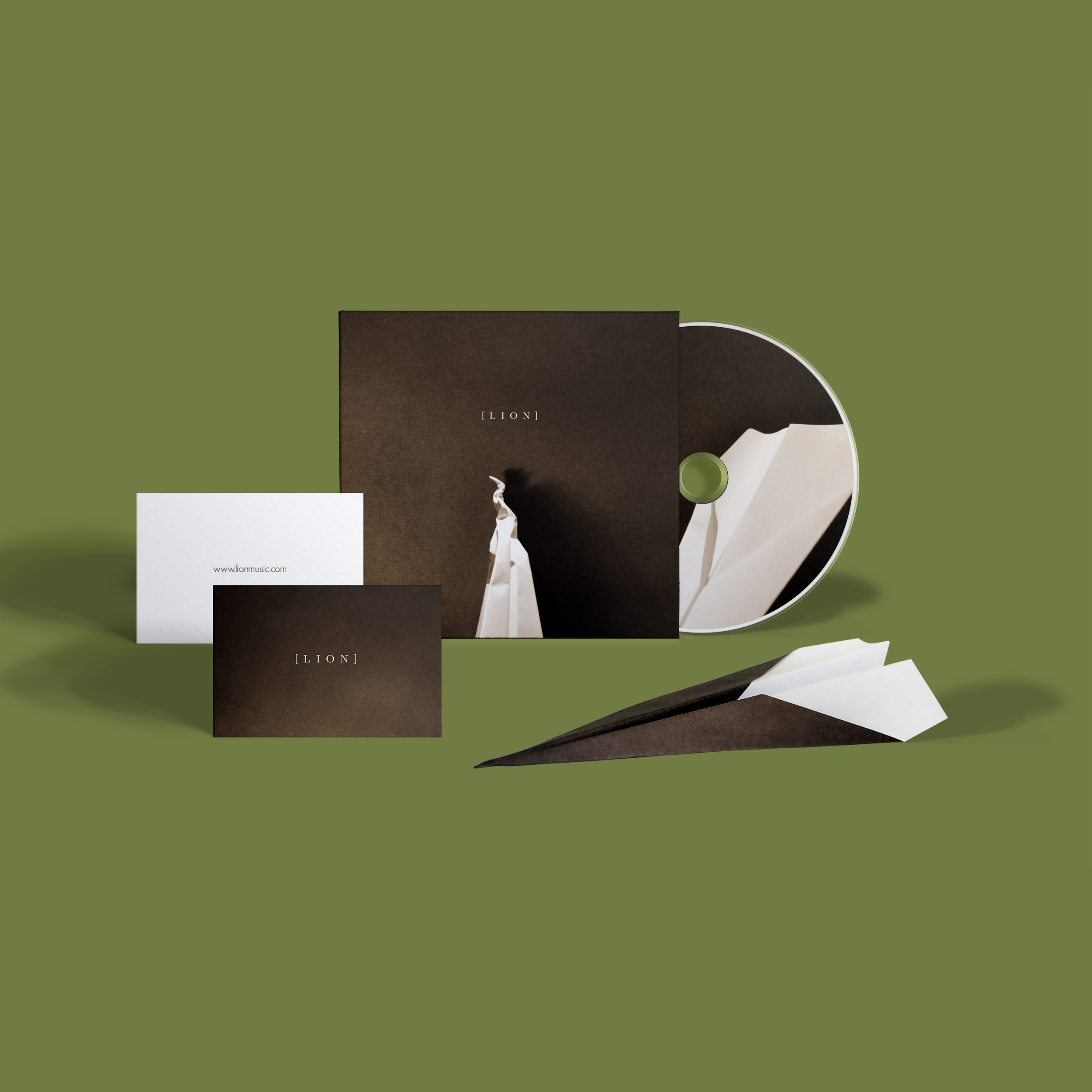 I designed the complete visual identity and debut album artwork for the band, [LION]. This project centered on a custom, minimalist band logotype and a conceptual cover for "Lionshare" featuring a single, damaged paper aeroplane. Beyond the packaging, I extended the concept into experiential merchandise, designing a branded paper aeroplane giveaway complete with contact information for the album's first live performance. This unified approach connected the visual identity to the physical launch experience.