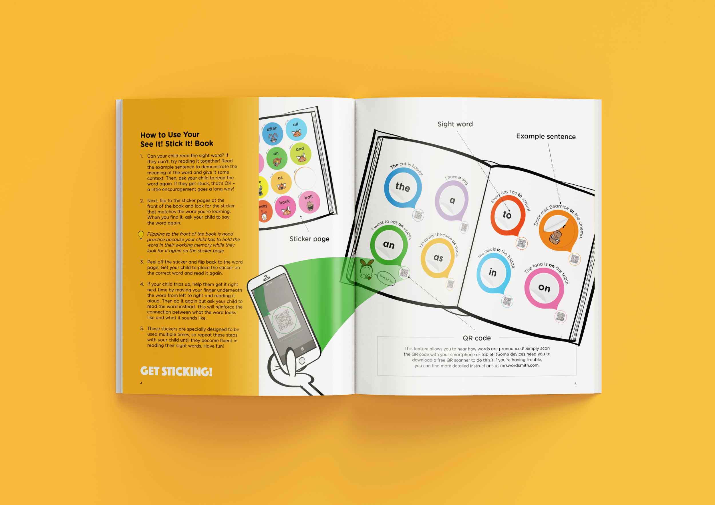 I designed the full layout and visual structure for the See It Stick It sight words sticker book series for Mrs Wordsmith. This project involved creating an interactive learning experience across a four part book set that helps children master 400 essential sight words. My work focused on balancing playful typography with a functional layout, including integrated QR codes for audio pronunciation and dedicated space for reusable stickers. The goal was to transform complex reading concepts into a tactile and engaging activity for early readers.